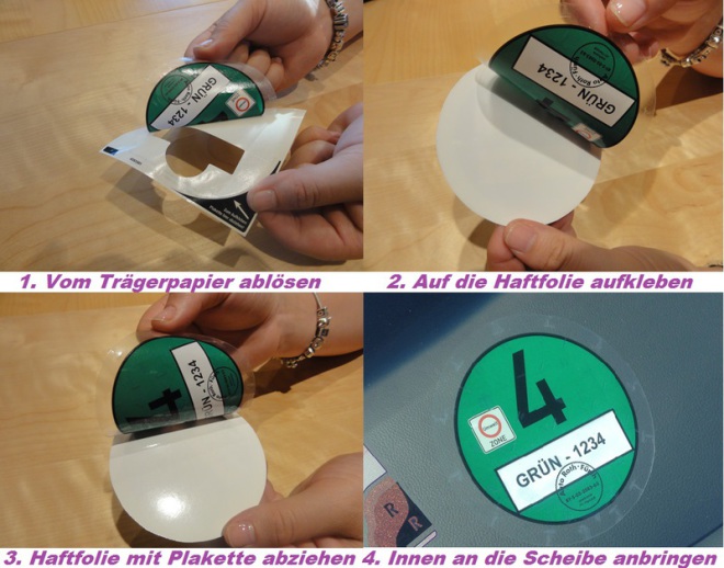 Je nach Emmisionsklasse Ihres Fahrzeuges wird eine grüne, gelbe oder rote Plakette geliefert.